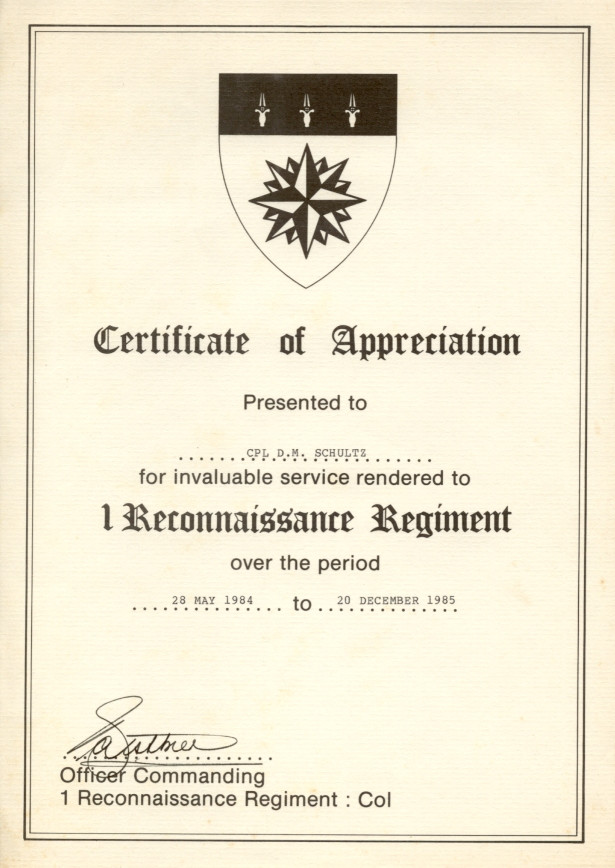 During 1976/7, the Reconnaissance Commando School was also established as a part of 1 Reconnaissance Commando.