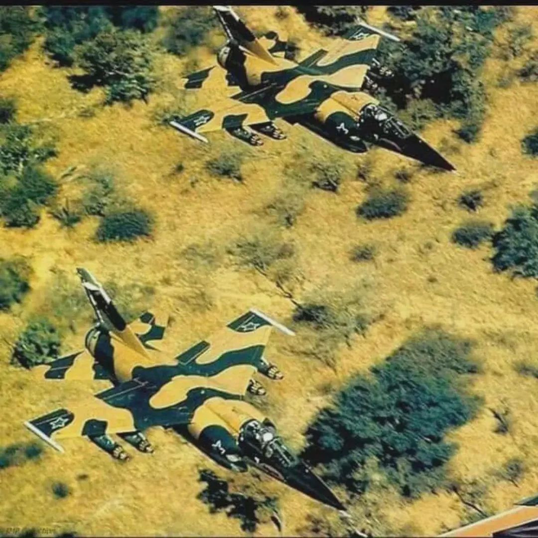 1 Sqn #Mirage F1AZ was taken from the back seat of a 24 Sqn #Buccaneer whilst flying on a combat sortie over Angola during Ops #Modular in 1987