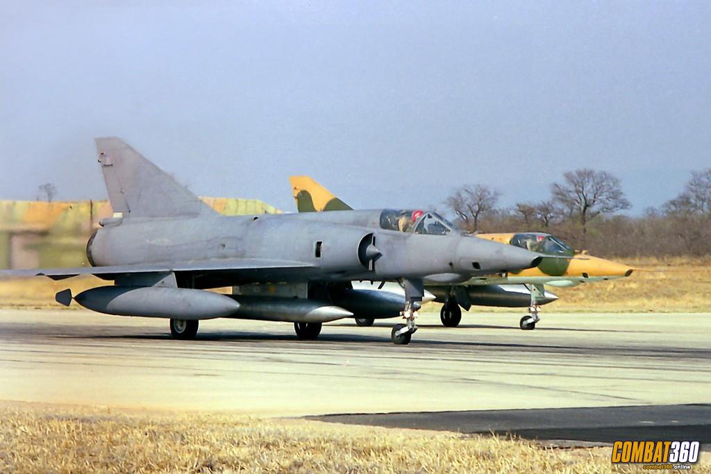 South African Air Force 2 Squadron Mirage IIICZ is seen landing at Air Force Base (AFB) Ondangwa after returning from a bombing mission in Southern Angola.
