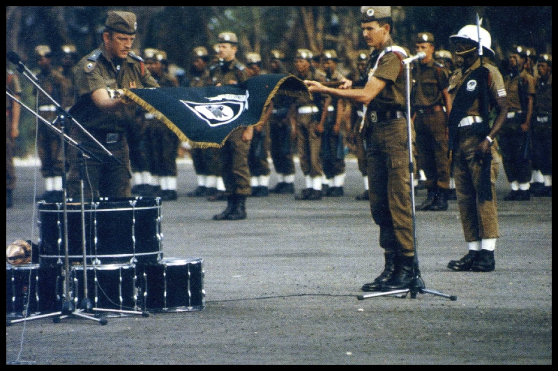 31 South African Infantry Battalion (31 SAI), or Bushmen Battalion was originally formed as Alpha Group in 1974, then renamed to 31 Battalion after Operation Savannah. In 1980 the unit became 201 Battalion as part of the SWATF. After the disbandment of SWATF in 1989, both 201 Battalion and 203 Battalion were merged into a singe battalion, now named 31 South African Infantry Battalion (31 SAI), using this newer emblem, based at Schmidtsdrift, Kimberley, as part of the Northern Cape Command. Sunday, 31 SAI Battalion was disbanded at a public ceremony in the Cape Province, on 7 March 1993.