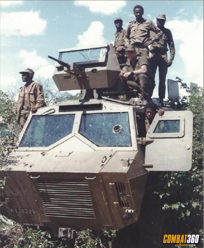 South West African Territorial Force 101 Battalion testing the Mingwe prototype mine protected vehicle on operations in Namibia and/or southern Angola – 1986