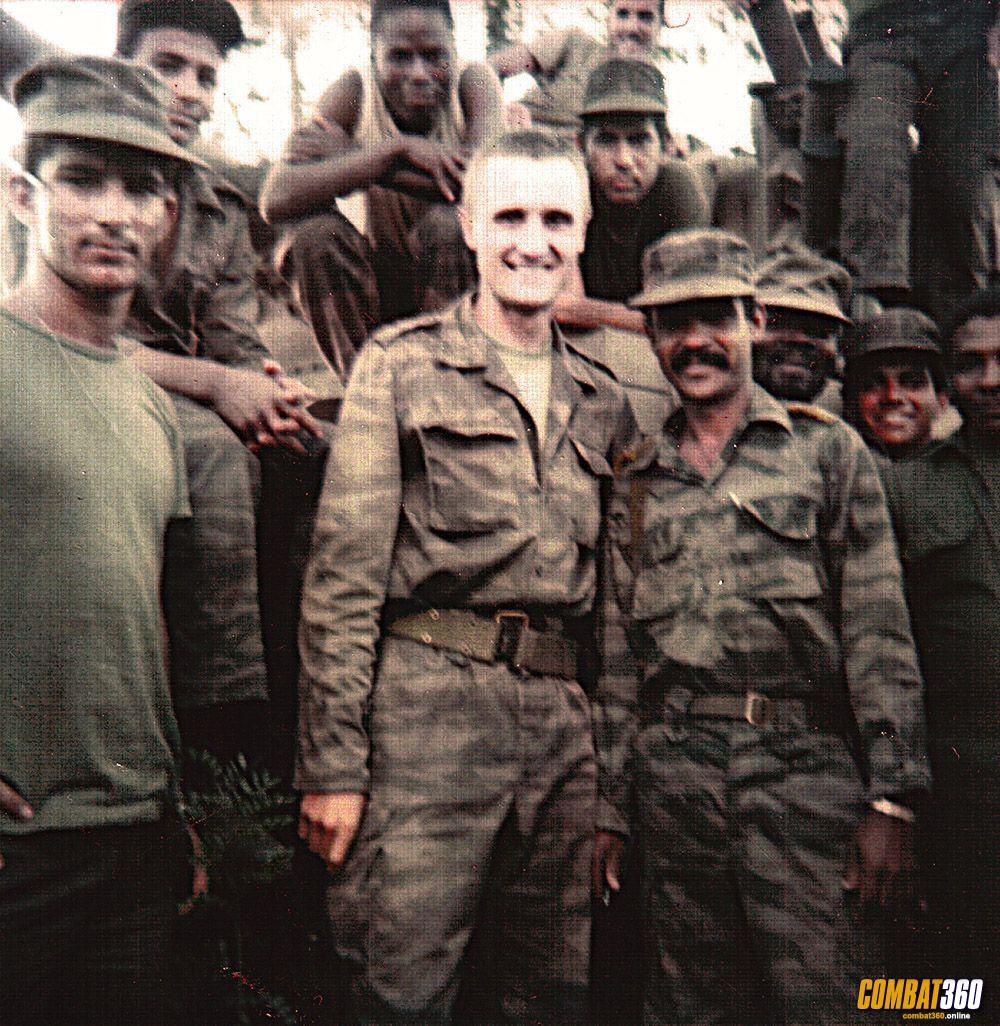 Angolan, Soviet and Cuban soldiers pose for a photograph near Cuito Cuanavale in April 1988.
