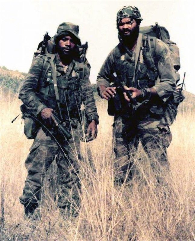 SADF Recces ready for a mission. Note what looks like a Beretta’s AR-70 5.56 assault rifles. #Recce