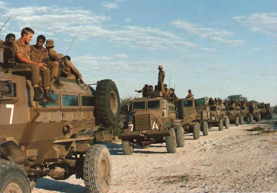 #SWATF (Southwest Africa Territorial Force) #101Bn #Casspir MRAP convoy, rolling out to contact.