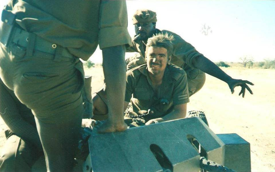 photograph of Cpl Stephen Bothma captures the grit and camaraderie of a 101 Battalion ‘Romeo Mike’ unit in action somewhere on the Angolan/South West Africa (Namibia) border