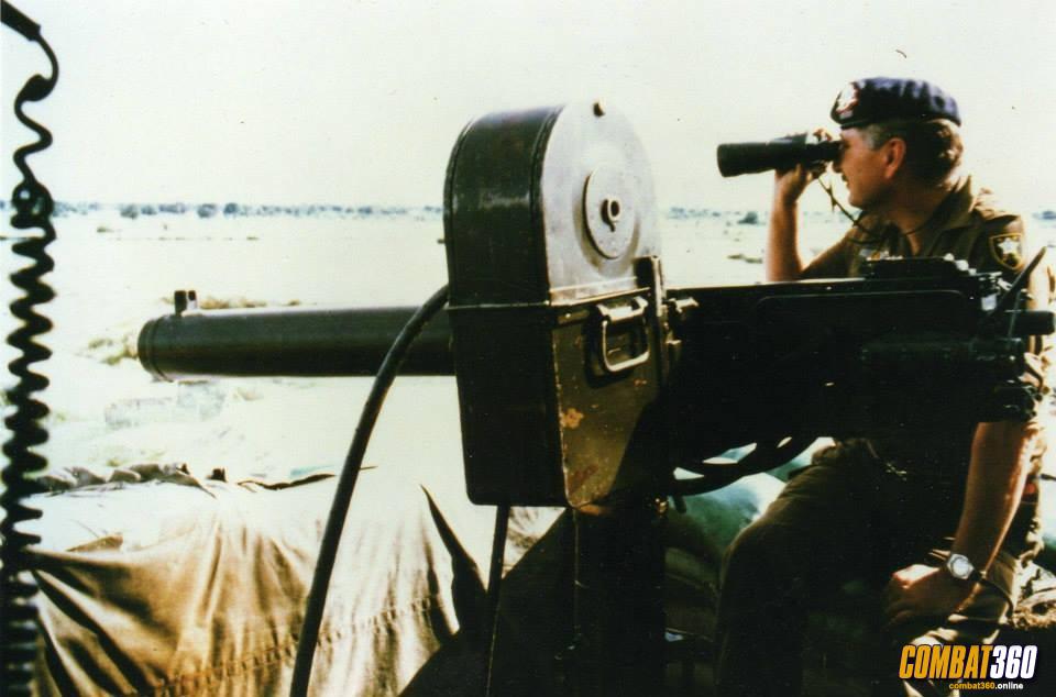 This is a water cooled .50 (50 calibre) Browning Machine Gun, seen here in the South West African/Namibian Operational Area during the Bush War.