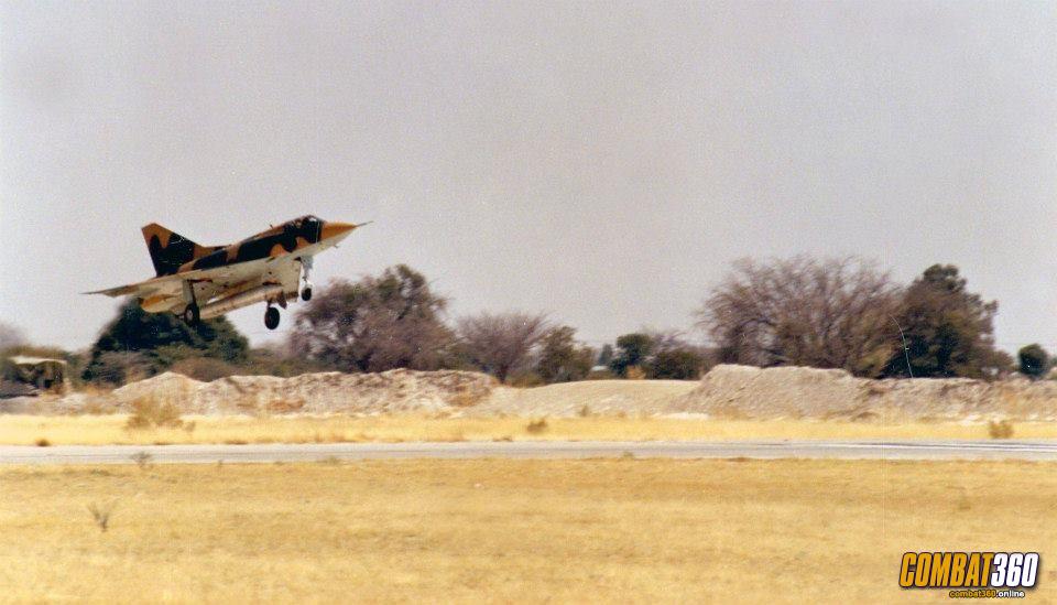 South African Air Force 2 Squadron Mirage IIICZ is seen landing at Air Force Base (AFB) Ondangwa after returning from a bombing mission in Southern Angola.
