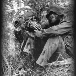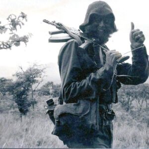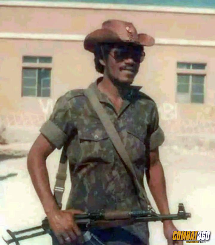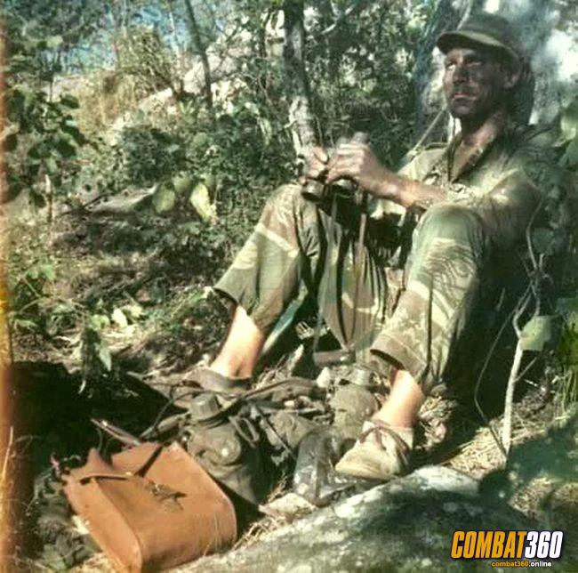 South African 1 Recce operator L CPL Ribeiro, missing and listed as dead during casualty transport in Angola, August 1976. He served as an Angolan paratrooper before joining the SADF. Ribeiro was one of the founding members of 32 Battalion. Here he is wearing “Recce 1st camo pattern” which was the inspiration behind 32Bn camo