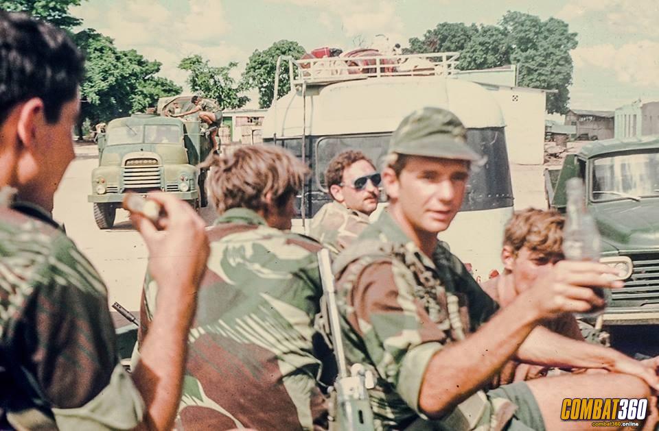 Rhodesian Light Infantry troopies having a mobile lunch break while participating in convoy ops, circa. 1978