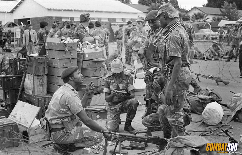 Rhodesian Security Forces preparing to conduct a patrol along the Mozambican border, 1979.