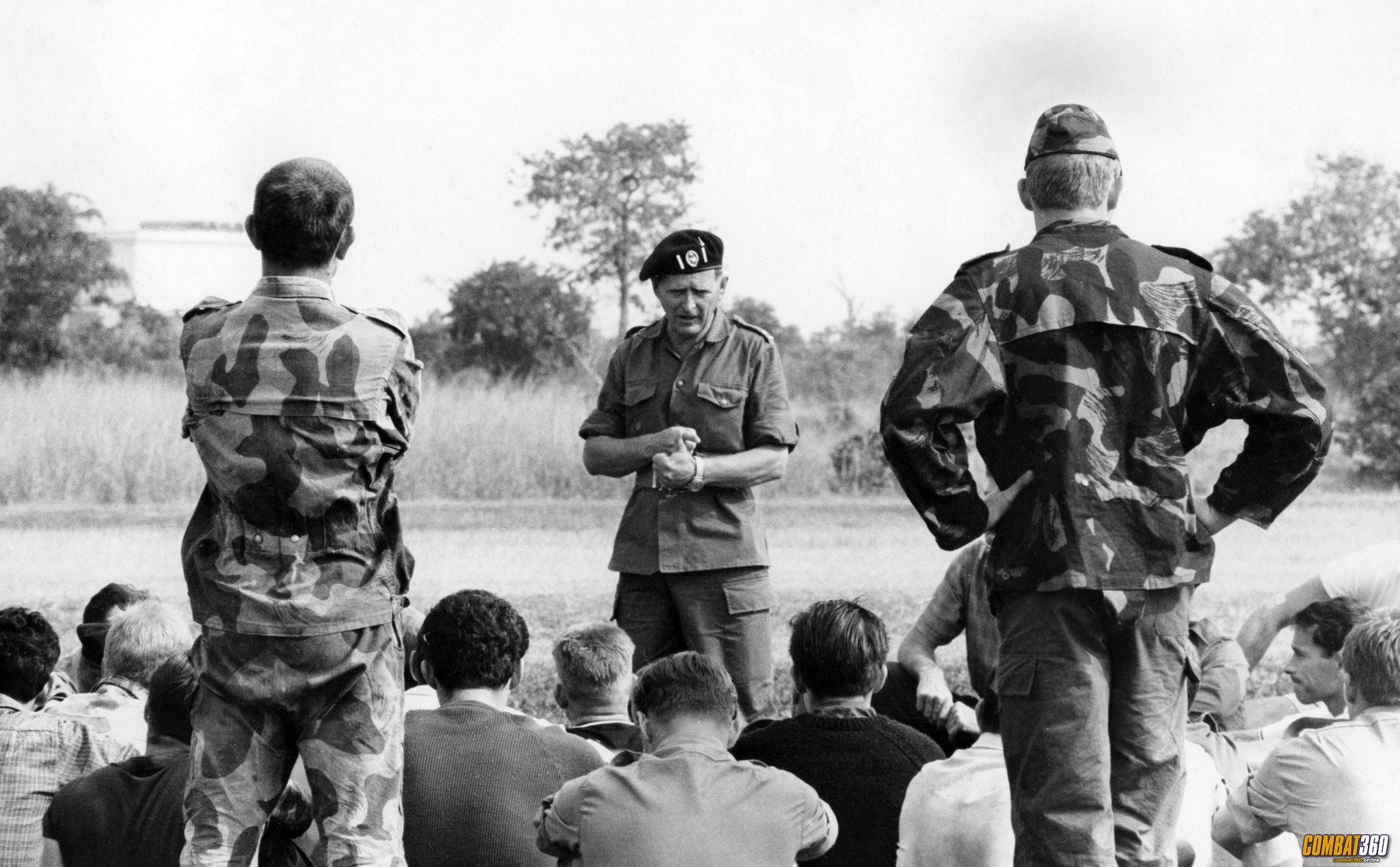 “Mad Mike” Hoare, in his trademark black beret, training mercenaries in #Katanga province in 1964.