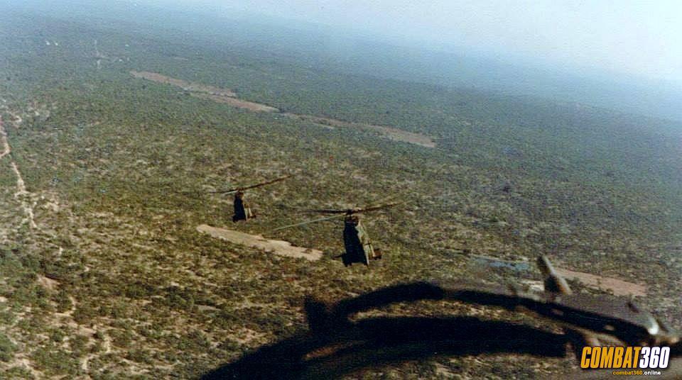 Here is a never before published photograph taken from the cockpit of a SAAF Puma Helicopter airlifting Paratrooper Fire-Force troops into action during the Border War.