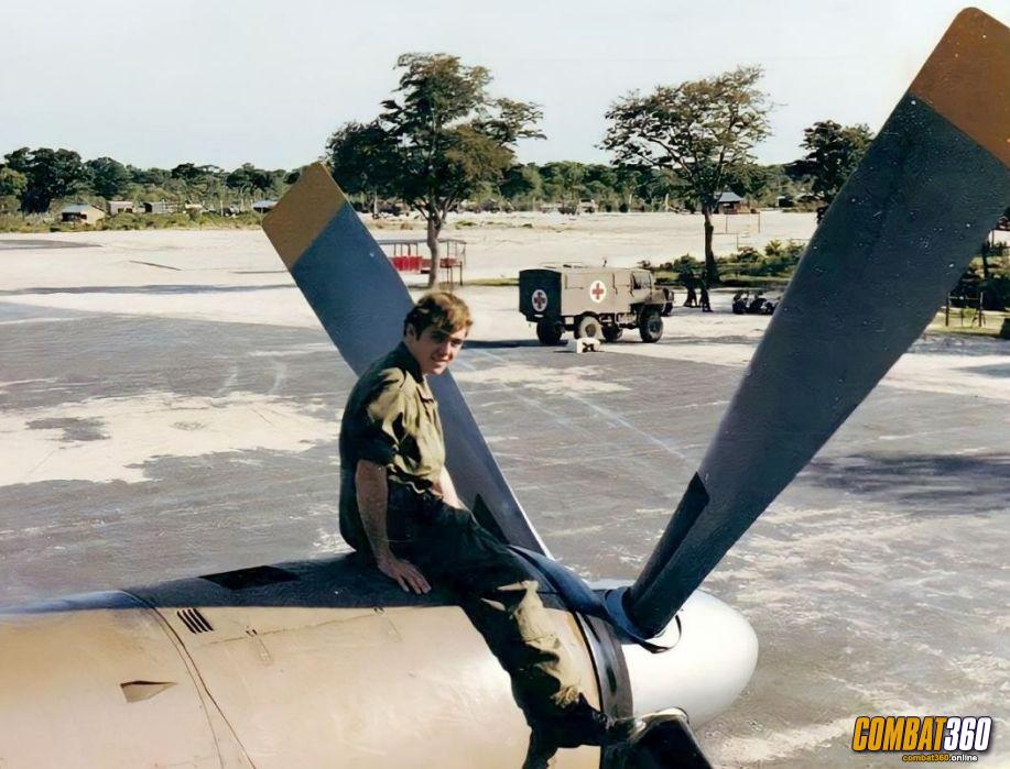 Air Loadmaster Derek Mathews doing an engine Oil Check on a C160Z at Omega, 03 December