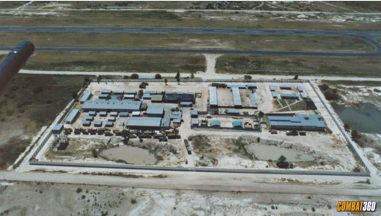 5/1 Recce base Fort Rev at AFB Ondangwa taken from a gunship. This is one of the late photos of the Fort, as it is bigger and had taken over some of Koevoet ground