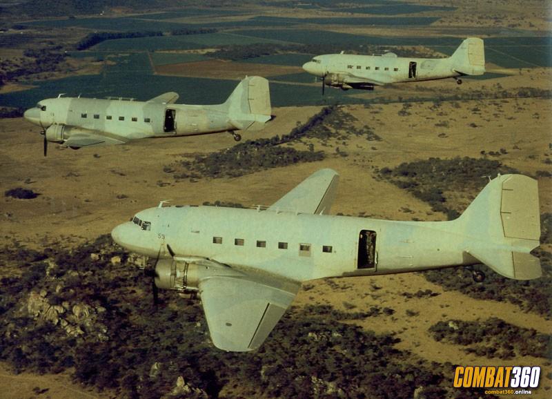 A superb photo of the three ship Dakota formation en route to the Chimoio strike. On the far Dak, you can clearly see the anti Strela mod fitted to the engine exhaust. The Dak with serial 53 (nearest camera) is one of the original Daks to SRAF/RRAF, and 03 (leading) is ex-SAAF 6841 taken on charge 7.02.64.