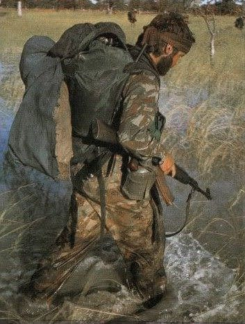 32 Battalion member on patrol in Angola, late 1980’s #32Bn