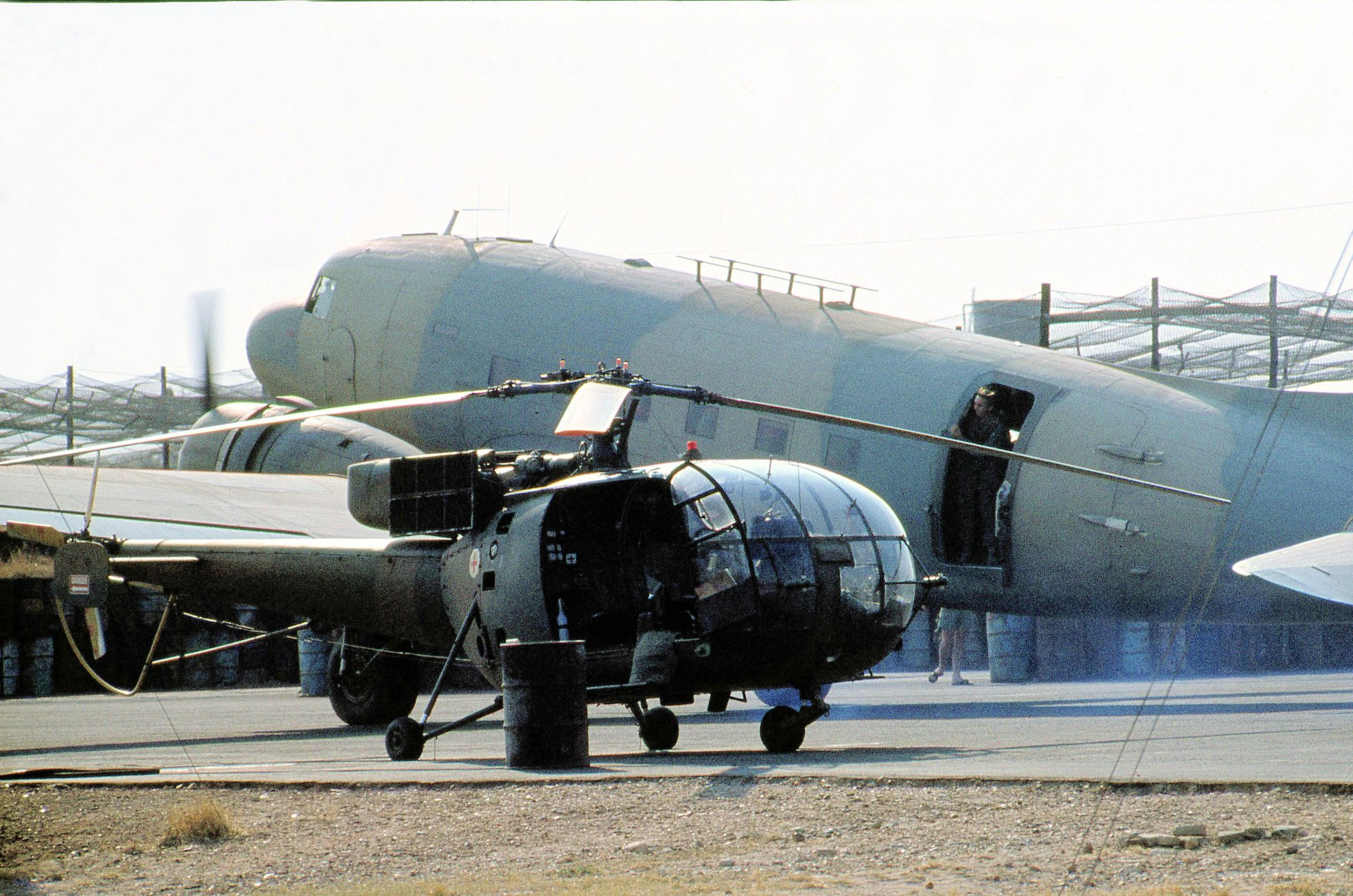 Stalwarts of the #Rhodesian Air Force – Dakota and #Alouette on fire force standby at Mtoko