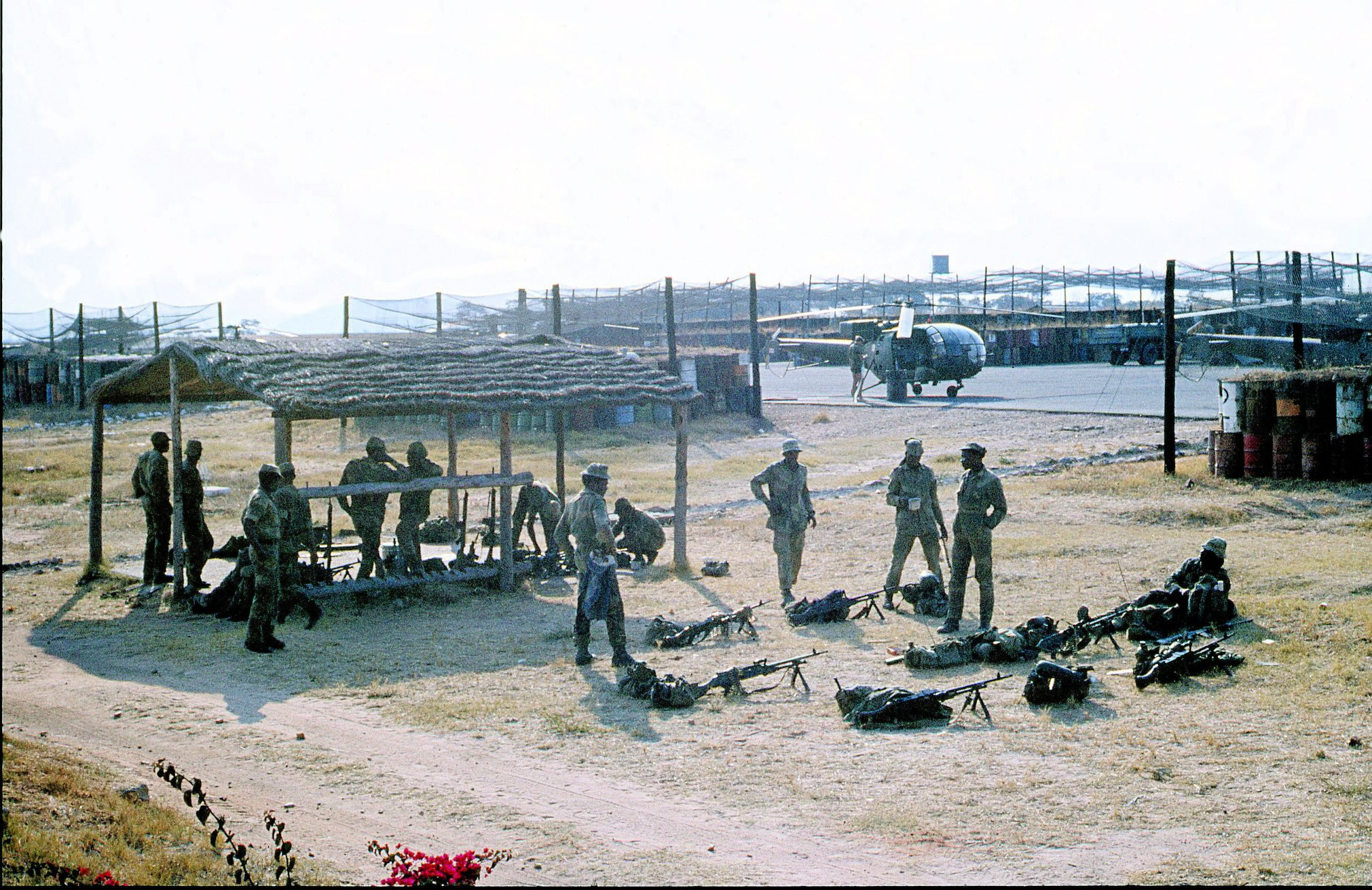 #Rhodesian soldiers getting kitted up for an attack on guerrilla camps in #Mozambique #Alouette