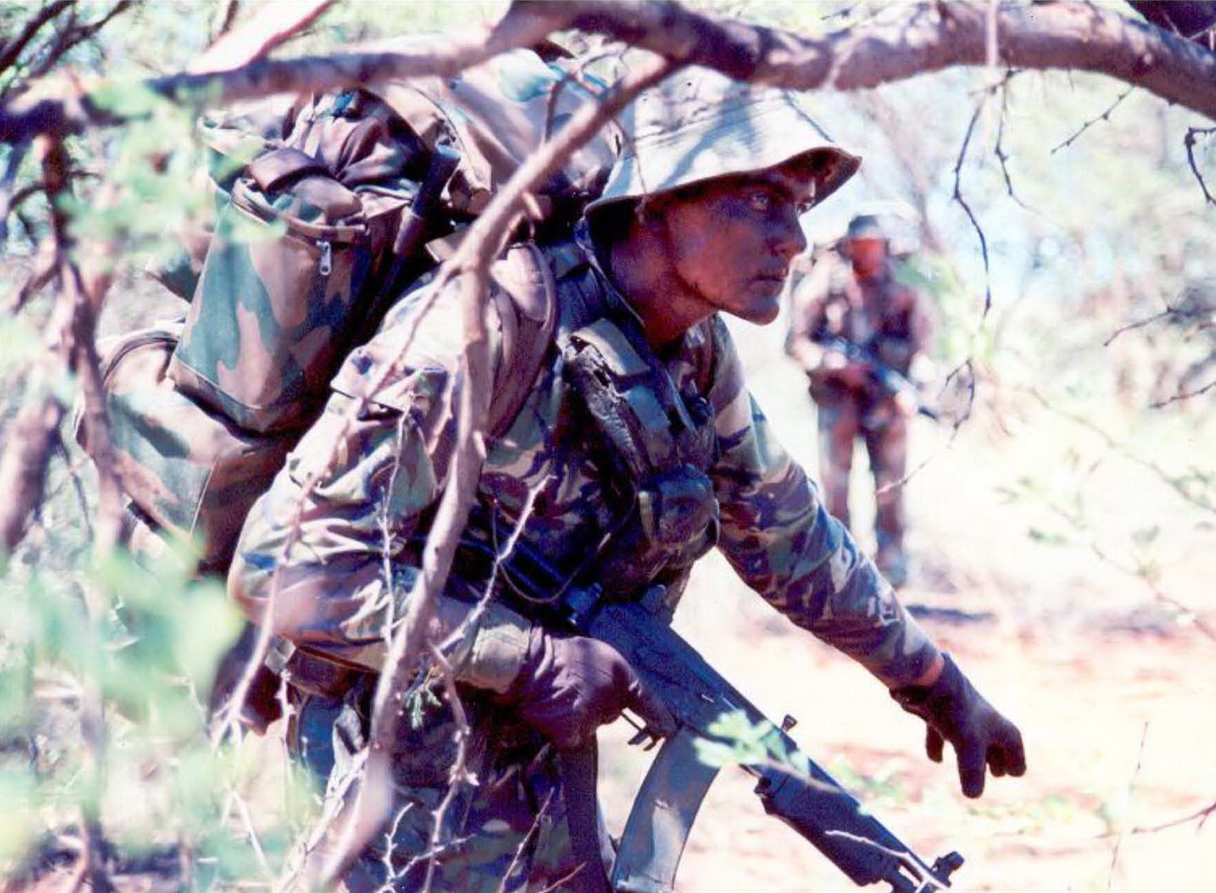 #32Bn Sgt. Frans ‘FL’ Smit during a patrol in Angola, 1980’s