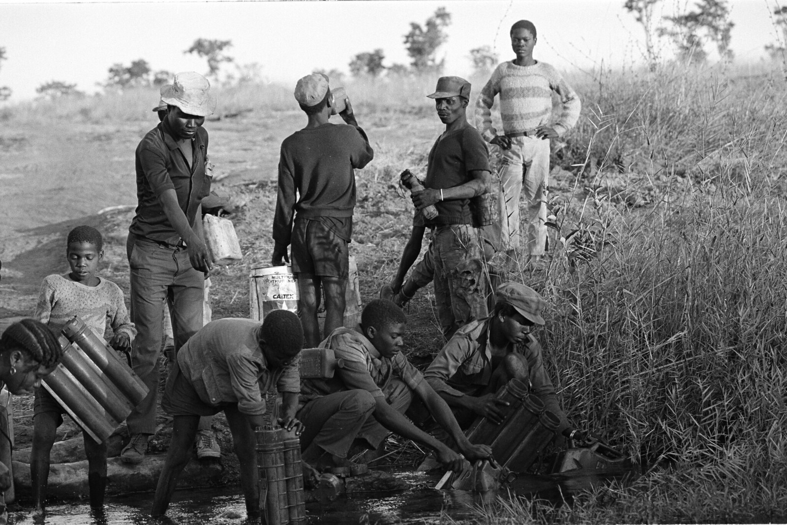 The troops of #UNITA (FALA) stop for fresh water. Huambo province. 1994