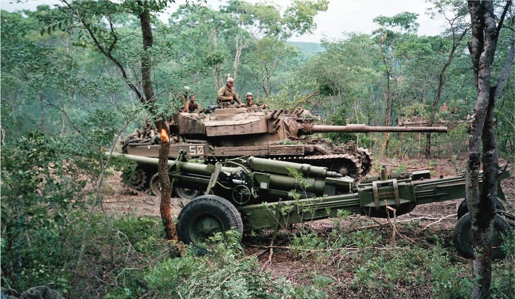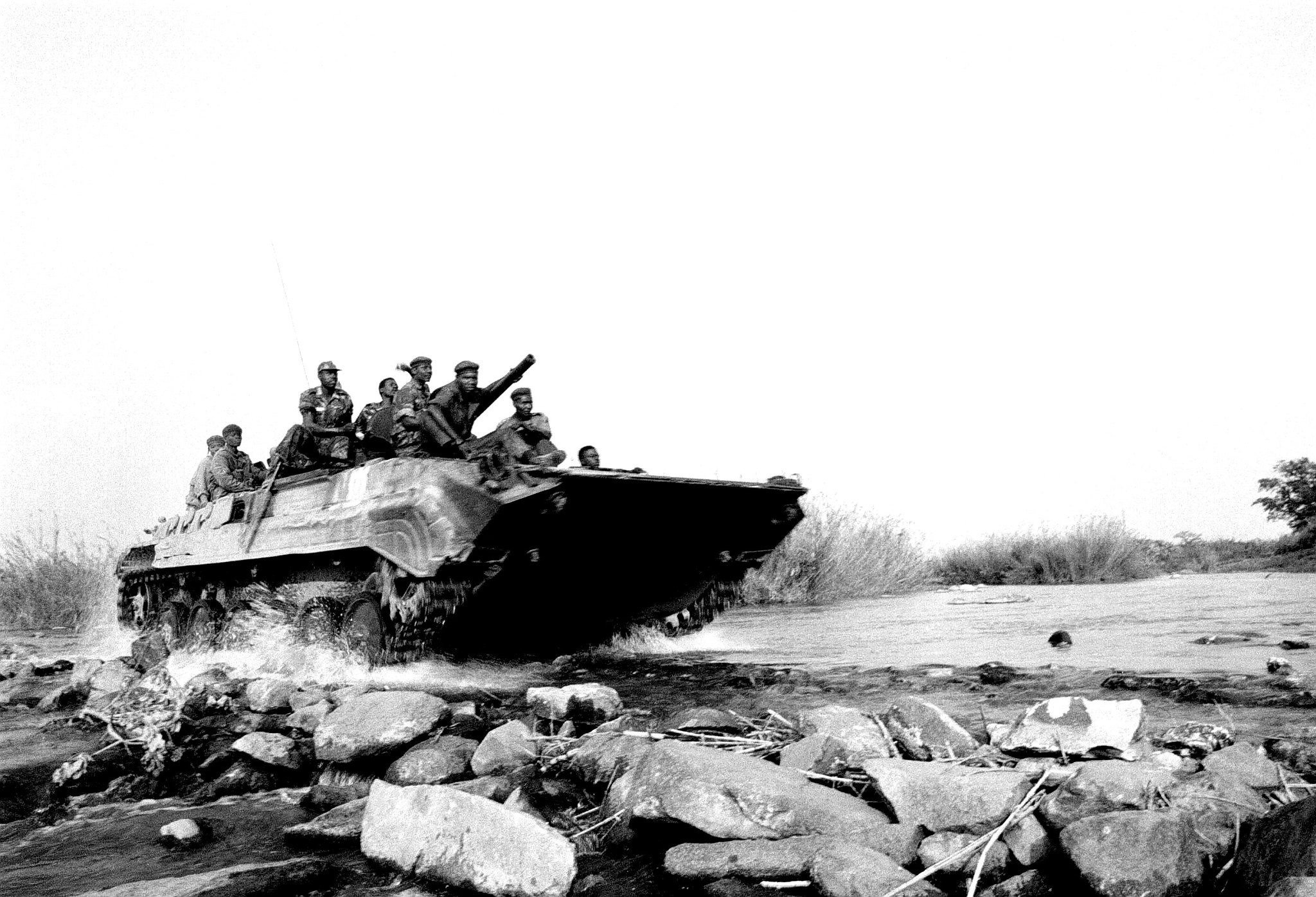 Soldiers from #FAPLA (Forças Armadas Populares de Libertação de Angola), the armed branch of the MPLA (Movimento Popular pela Libertação de Angola) who at the time when this photograph was taken (13/11/75) were participating in the Angolan Civil War (1975-2002). The lead man has draped a wounded soldier over his shoulders as they march. Noti…Read More