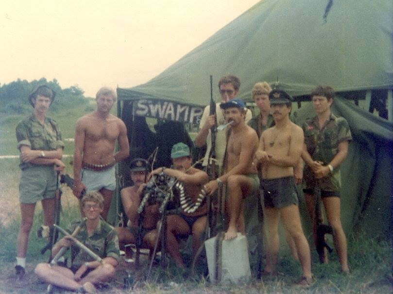 Rhodesia Regiment and #Rhodesian Air Force lads at the “Swamp”, circa. 1970s