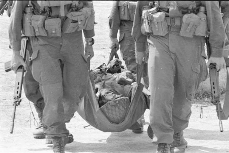 Paratroopers or “Parabats” from the 3 Parachute Battalion, South African Army, recovering the body of Rifleman Edward “Eddie” James Backhouse, today in 1977. He was 22 years old.