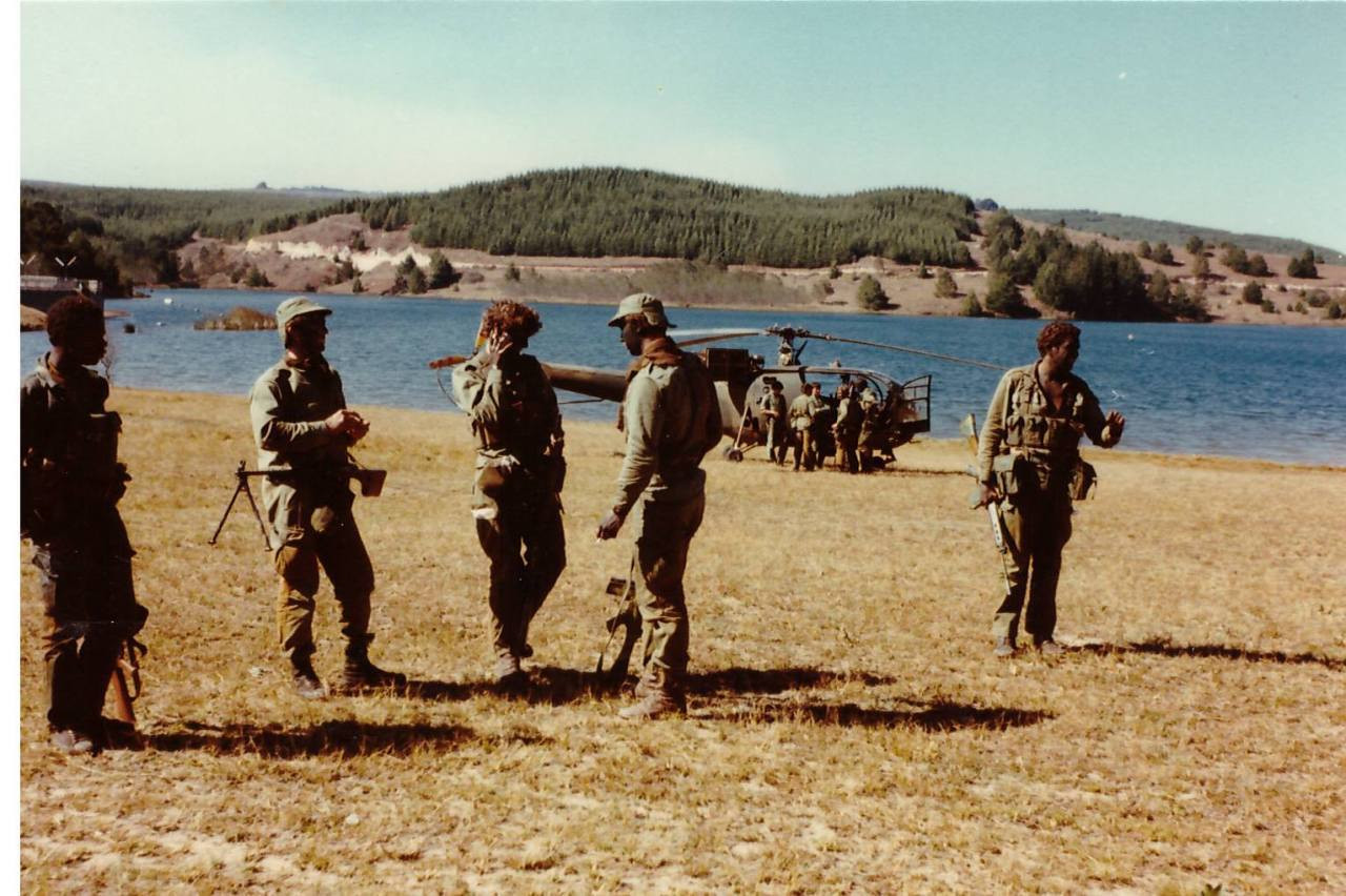 1 Platoon, “A” Coy, 1st Battalion, #Rhodesian African Rifles, at the “sharp end” along the Lukosi River, keeping the peace at the end of the Bush War, 1980. #RAR