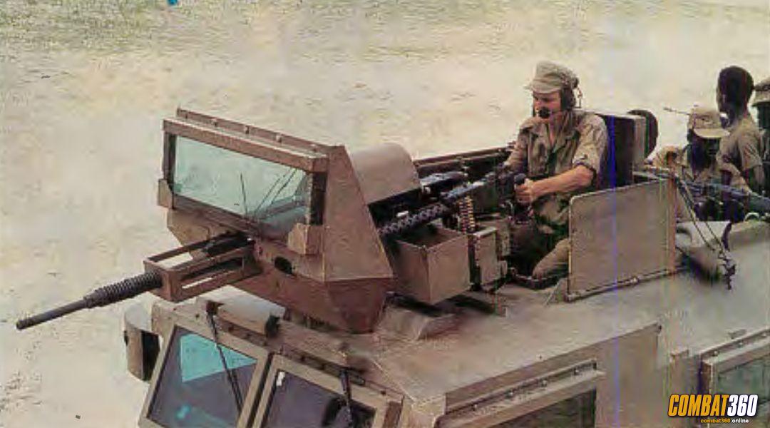 Casspir MPV armed with a Hispano-Suiza HS 820 20mm automatic cannon and coaxially mounted L3. Another L3 is mounted iri ball-joint mount attached to the commander’s front window, providing the Casspir with impressive firepower.