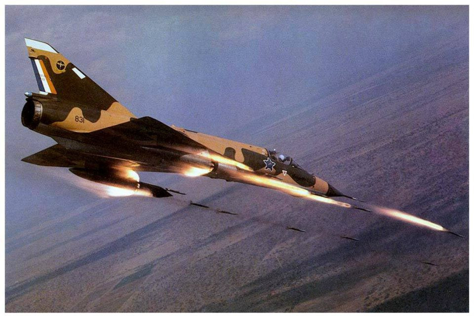SAAF Mirage IIIEZ 831 firing a ripple of 68mm SNEB High Explosive Unguided Rockets.