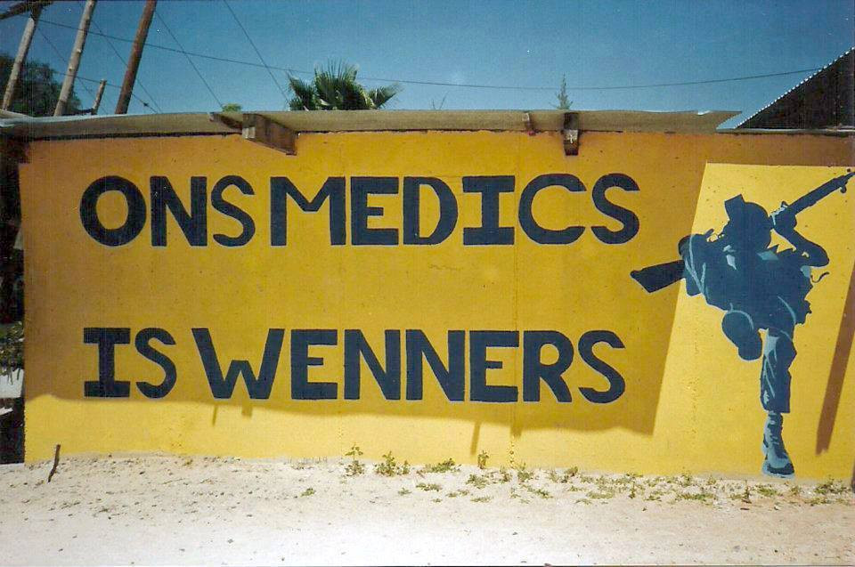 South West Africa Border War, many veterans will recognise this. Famous Medic Mural painted on the wall at the Mobile Army Surgical Hospital at AFB #Ondangwa. The Medic fraternity that served in this facility were Top Class and saved many lives (Both Friend and Foe) for the duration of the Bush War. Nothing short of RESPECT is given here.