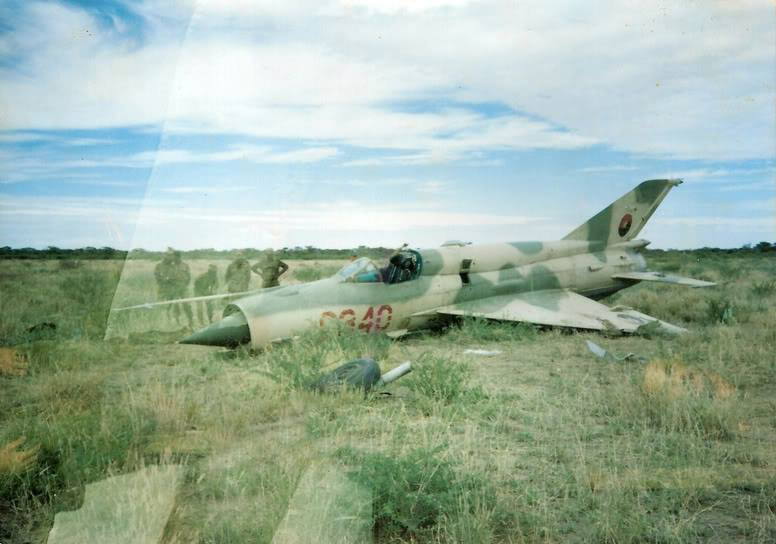 8 July 1981, Lt Adriano Bomba, decides to defect to South Africa in his ageing Mozambican Mig 17 (serial number 21) and is intercepted and escorted by two SAAF F1AZ Mirage fighter jets from Hoedspruit.