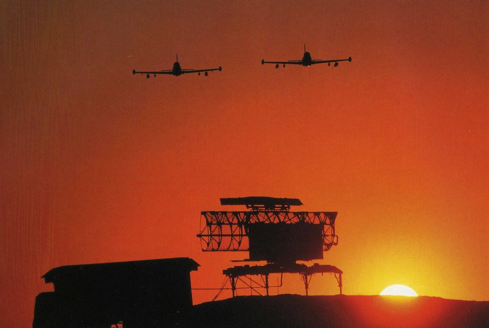At the going down of the sun, an amazing photo of two South African Air Force Impala Mk II jets over a radar unit at Air Force Base Ondangwa,.